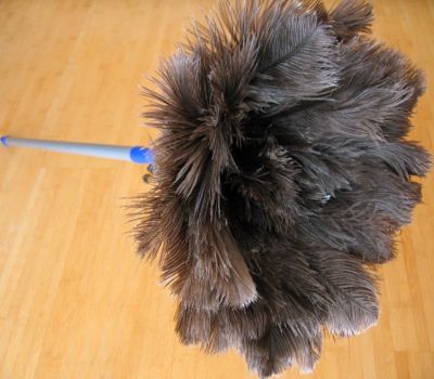 Die Federn sind gereinigt und desinfiziert. Der Staubwedel ist nagelneu.