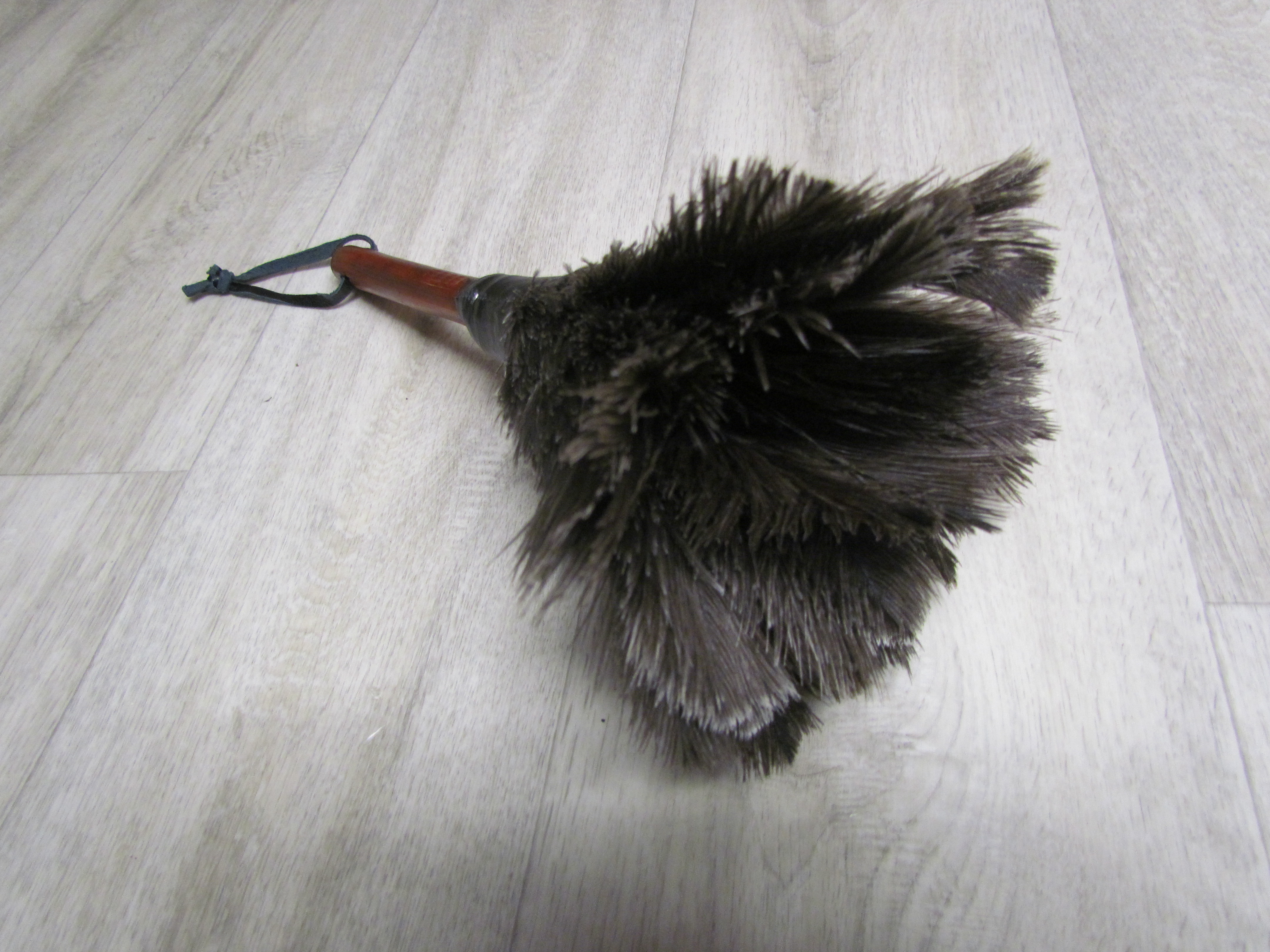 Wunderschöner Staubwedel mit echten Straußenfedern und formschönen Holzgriff, nicht ausziehbar.