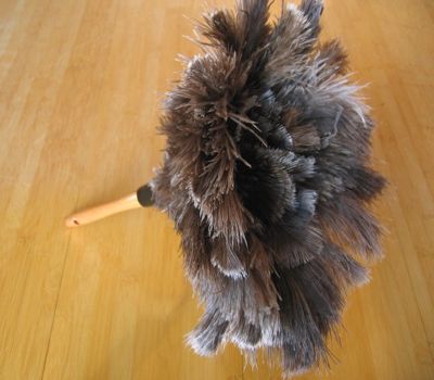 Die Federn sind gereinigt und desinfiziert. Der Staubwedel ist nagelneu.