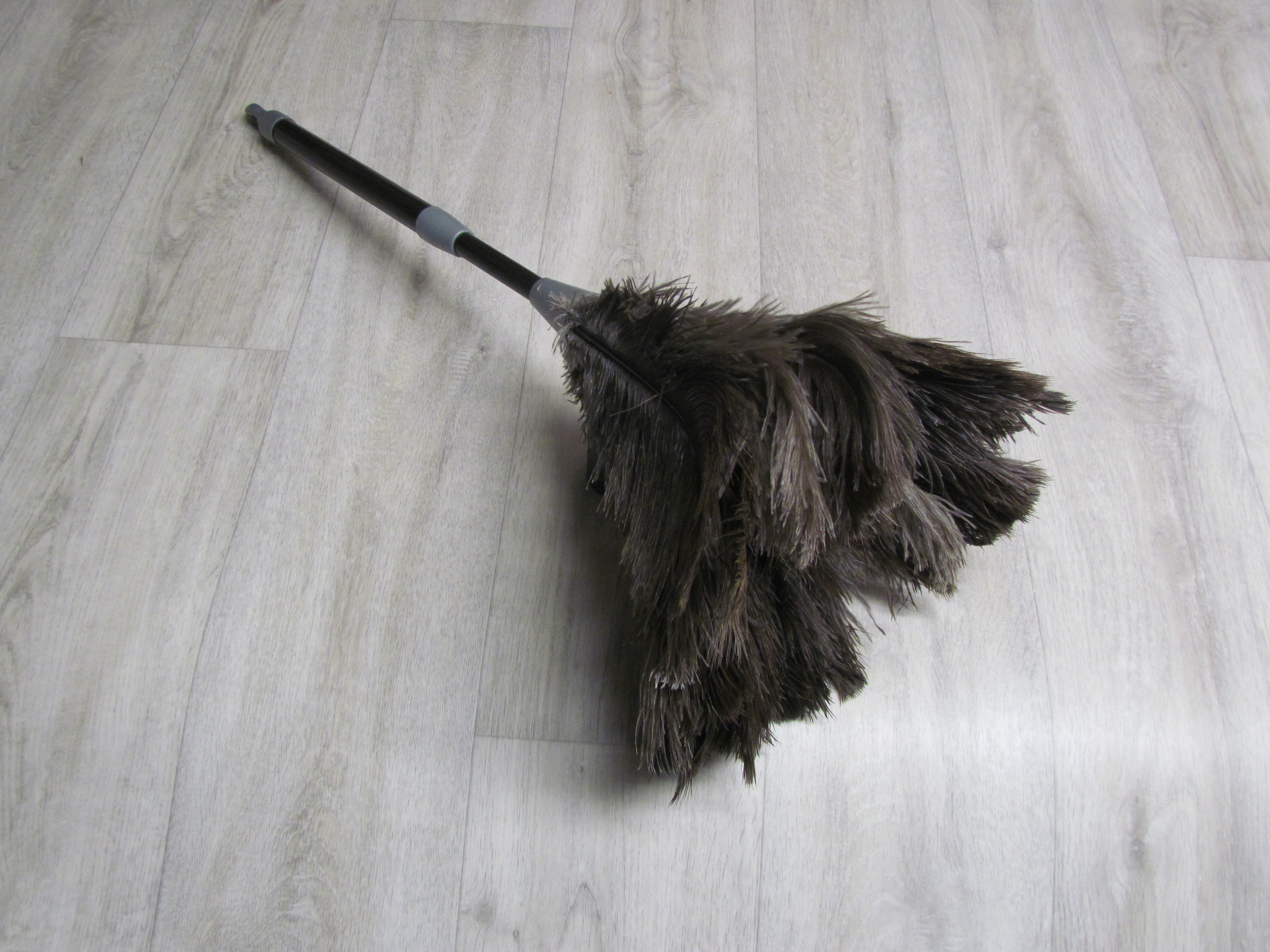 Die Federn sind gereinigt und desinfiziert. Der Staubwedel ist nagelneu.
