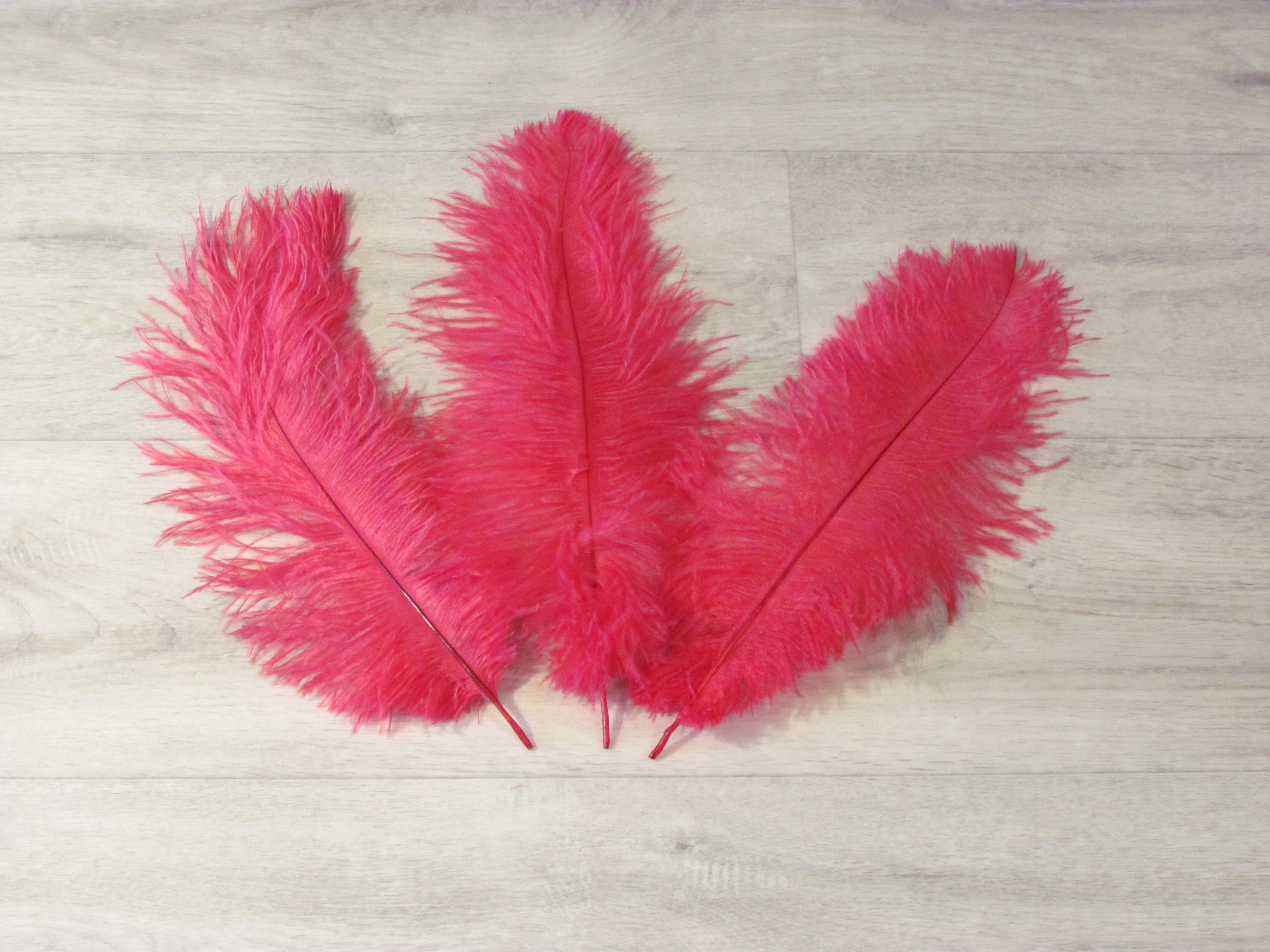 3 Straußenfedern 25 bis 30 cm kirschrot/pink