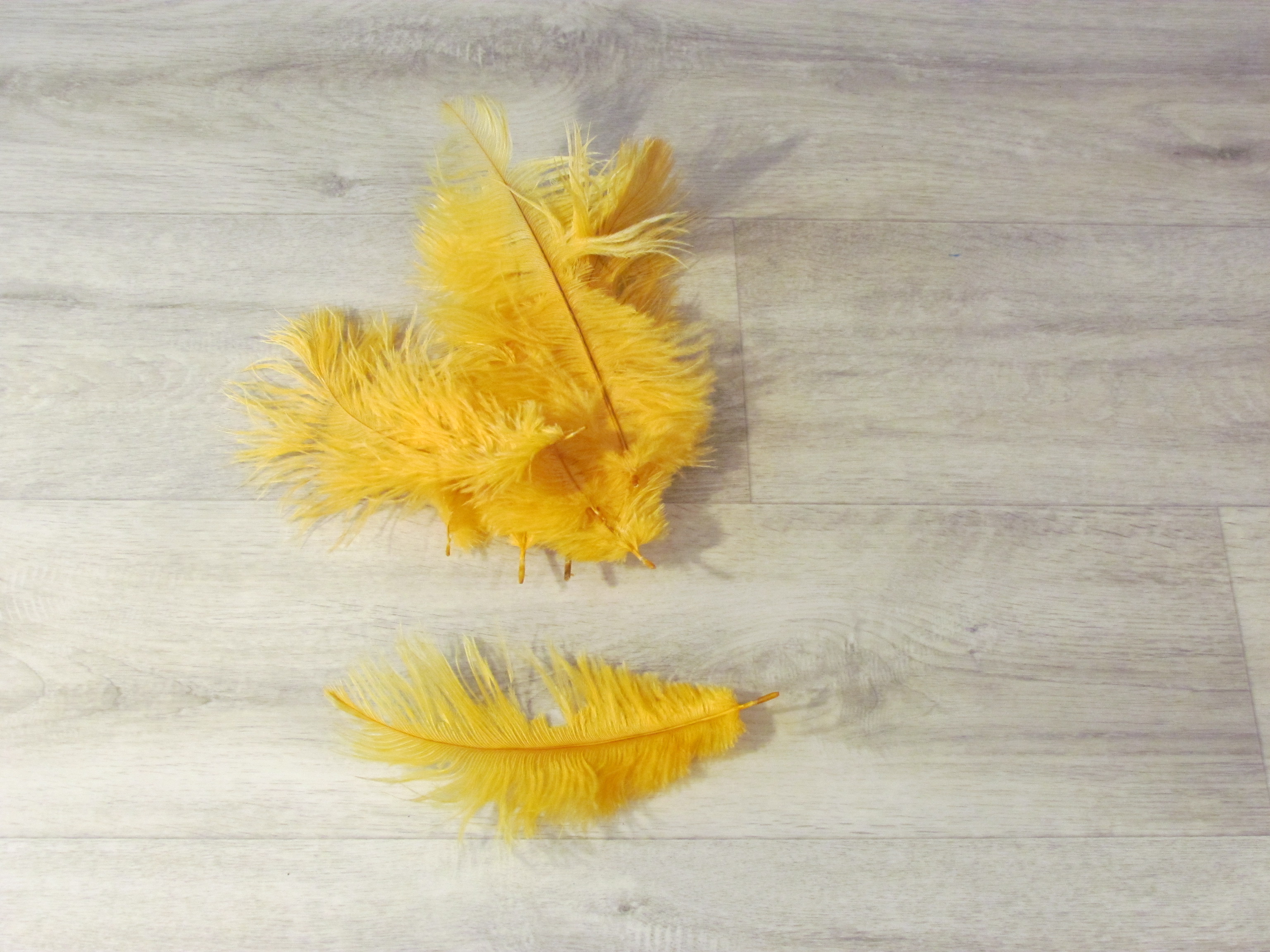 15 Straußenfedern 12 bis 20 cm dottergelb B-Ware