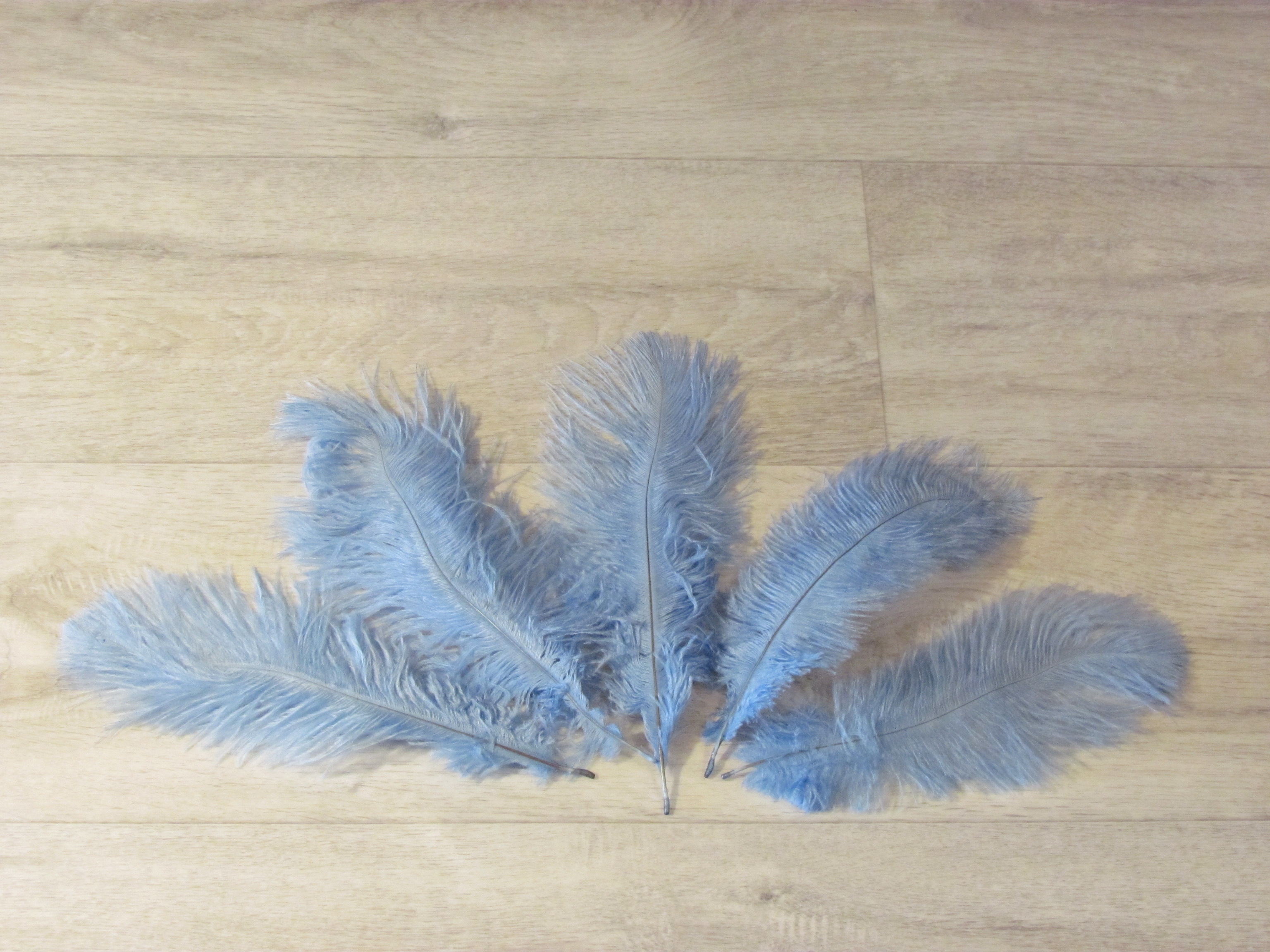 5 Straußenfedern 20 bis 25 cm himmelblau
