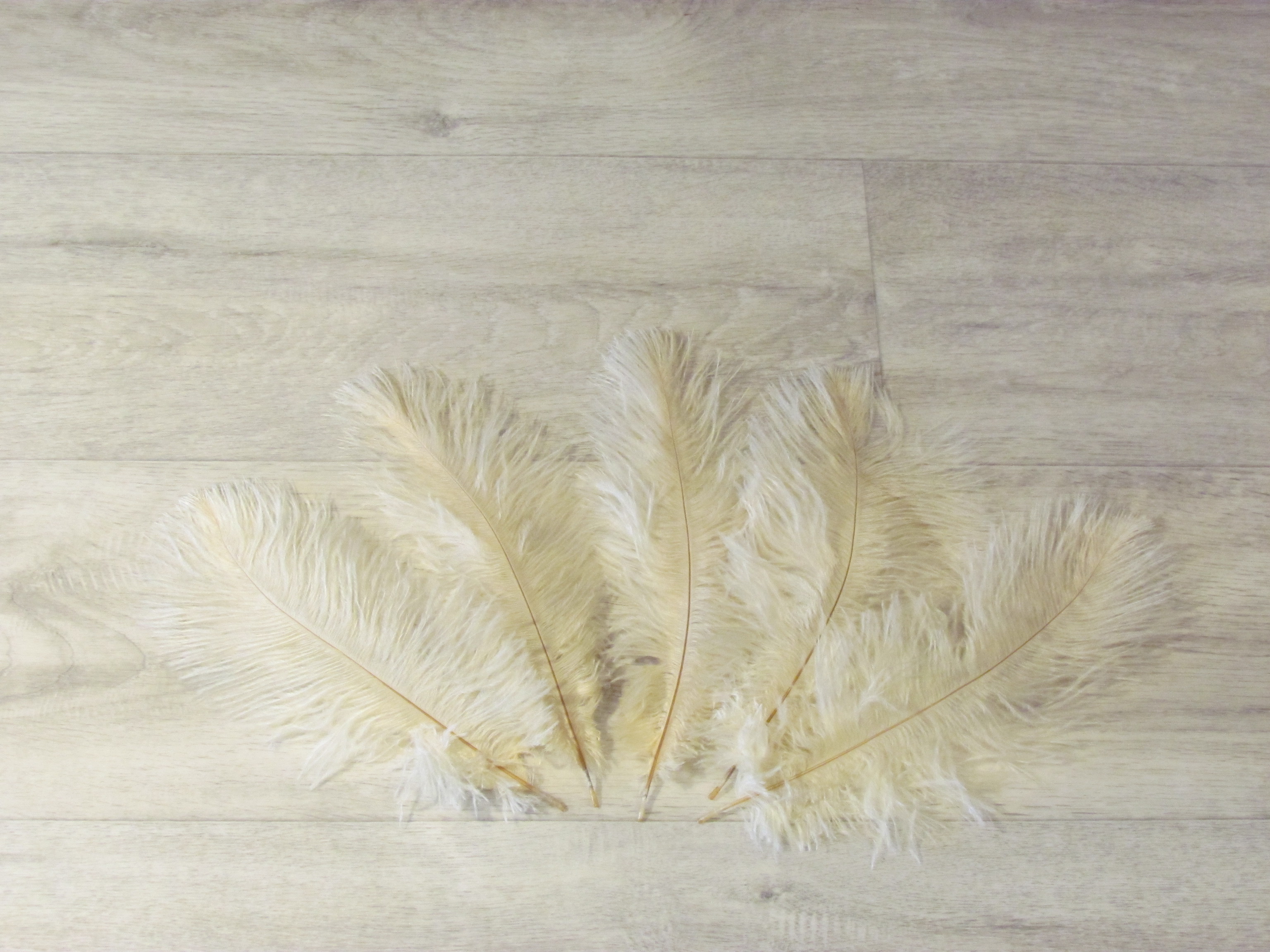 Jede Straußenfeder stammt aus Südafrika von Zuchtfarmen ist gereinigt, desinfiziert und nagelneu.