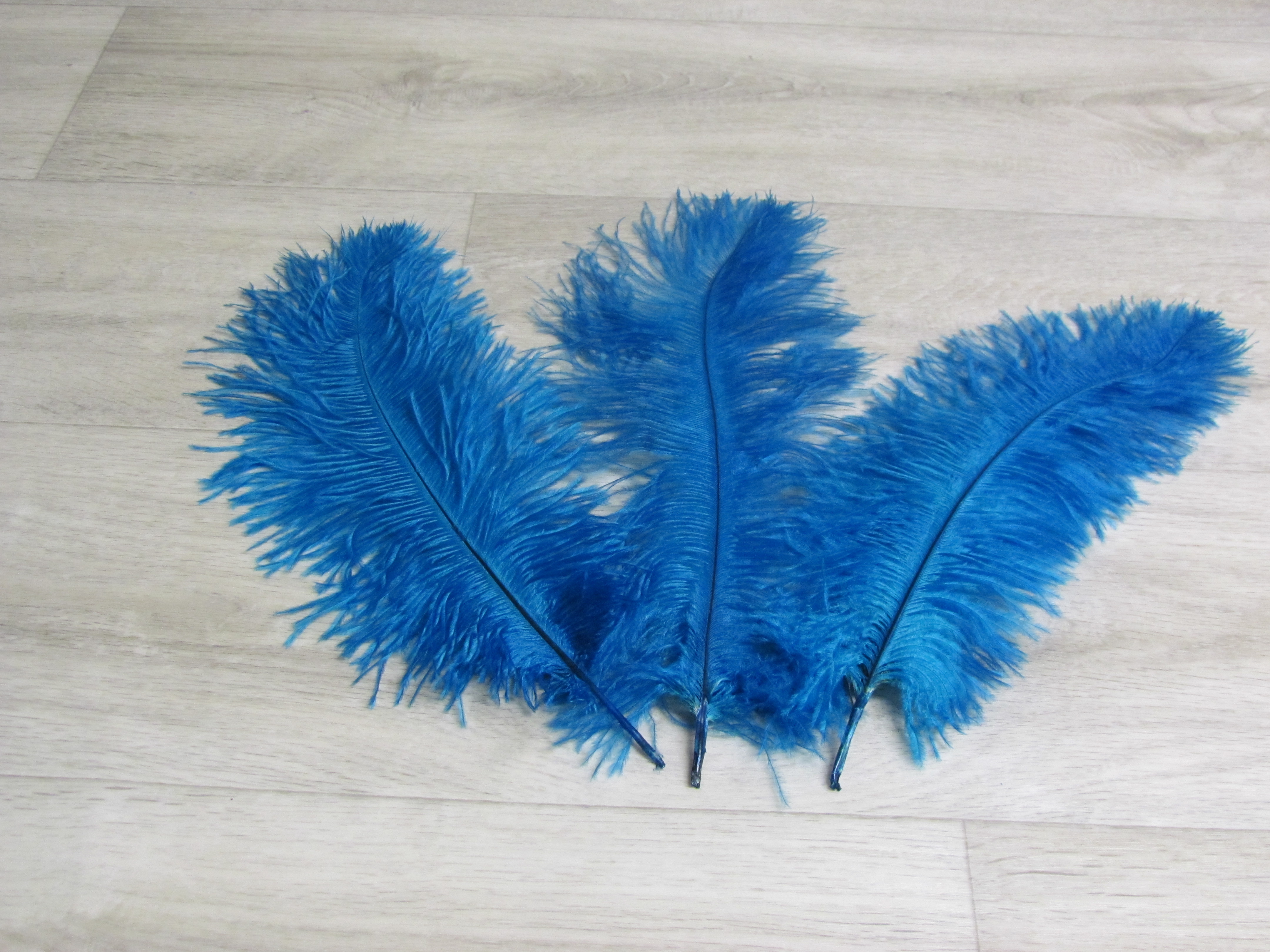 3 Straußenfedern 25 bis 30 cm dunkeltürkis