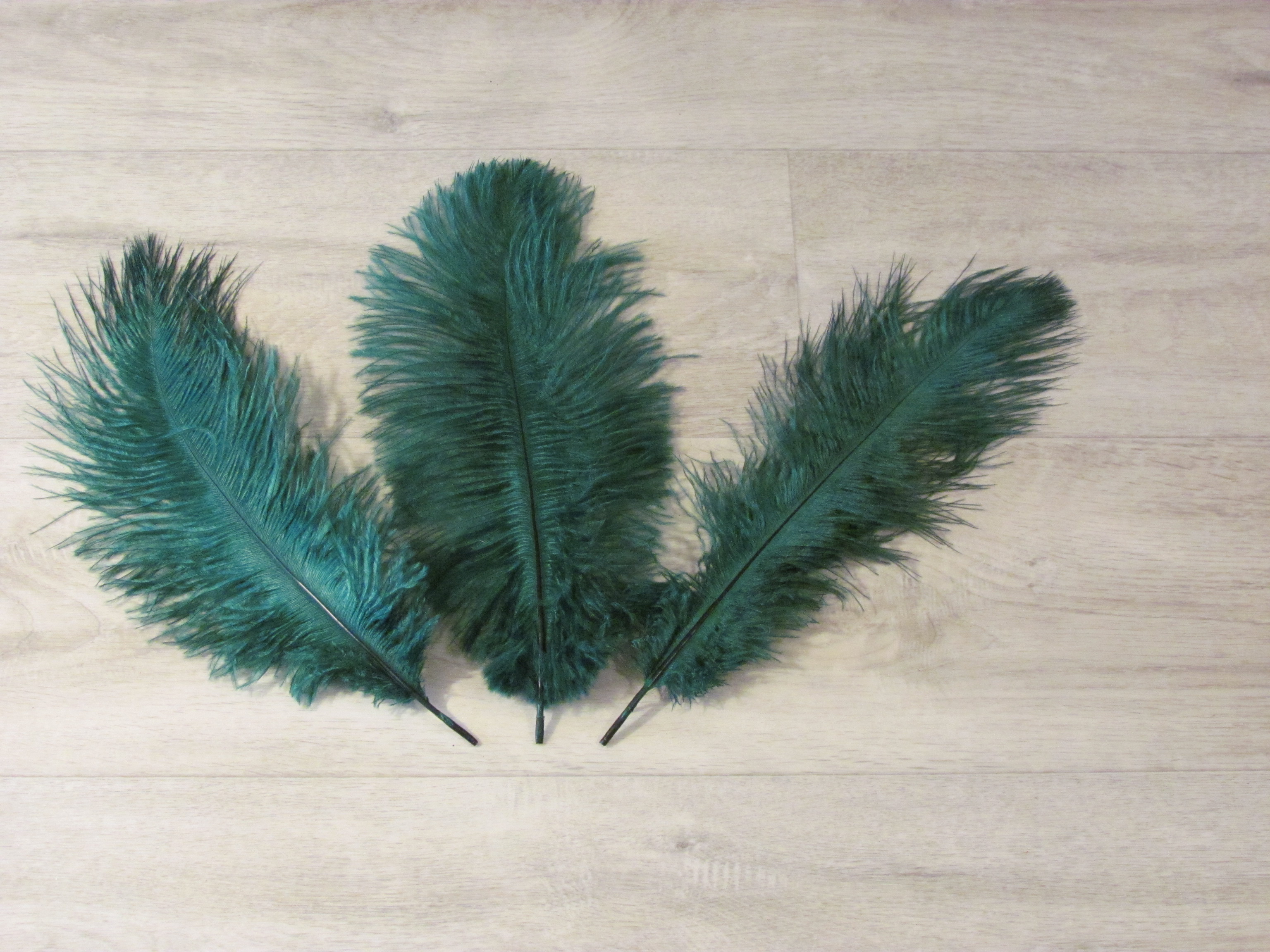 3 Straußenfedern 25 bis 30 cm flaschengrün