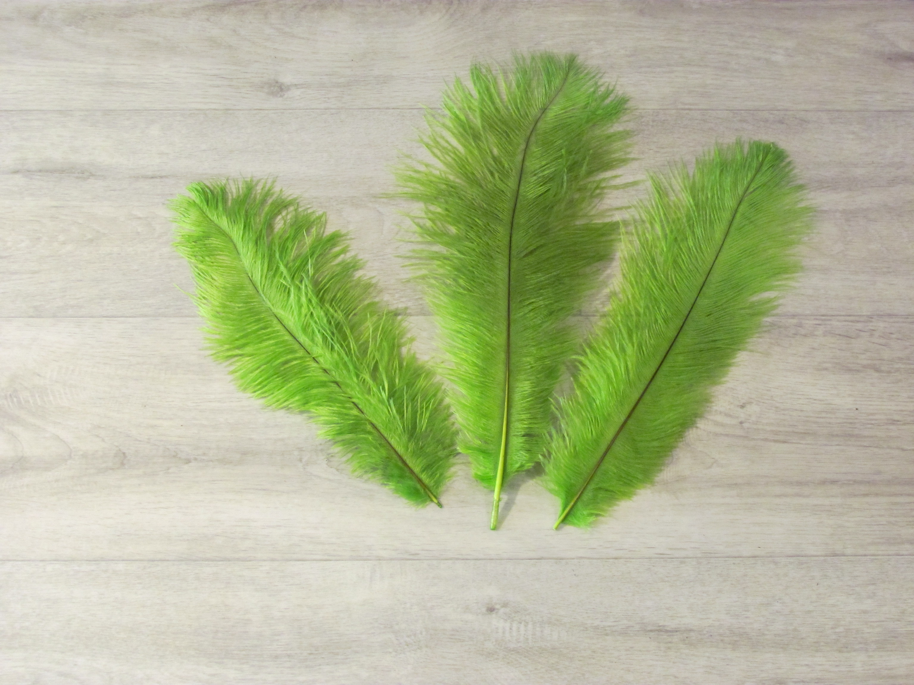 3 Straußenfedern 25 bis 30 cm limonengrün
