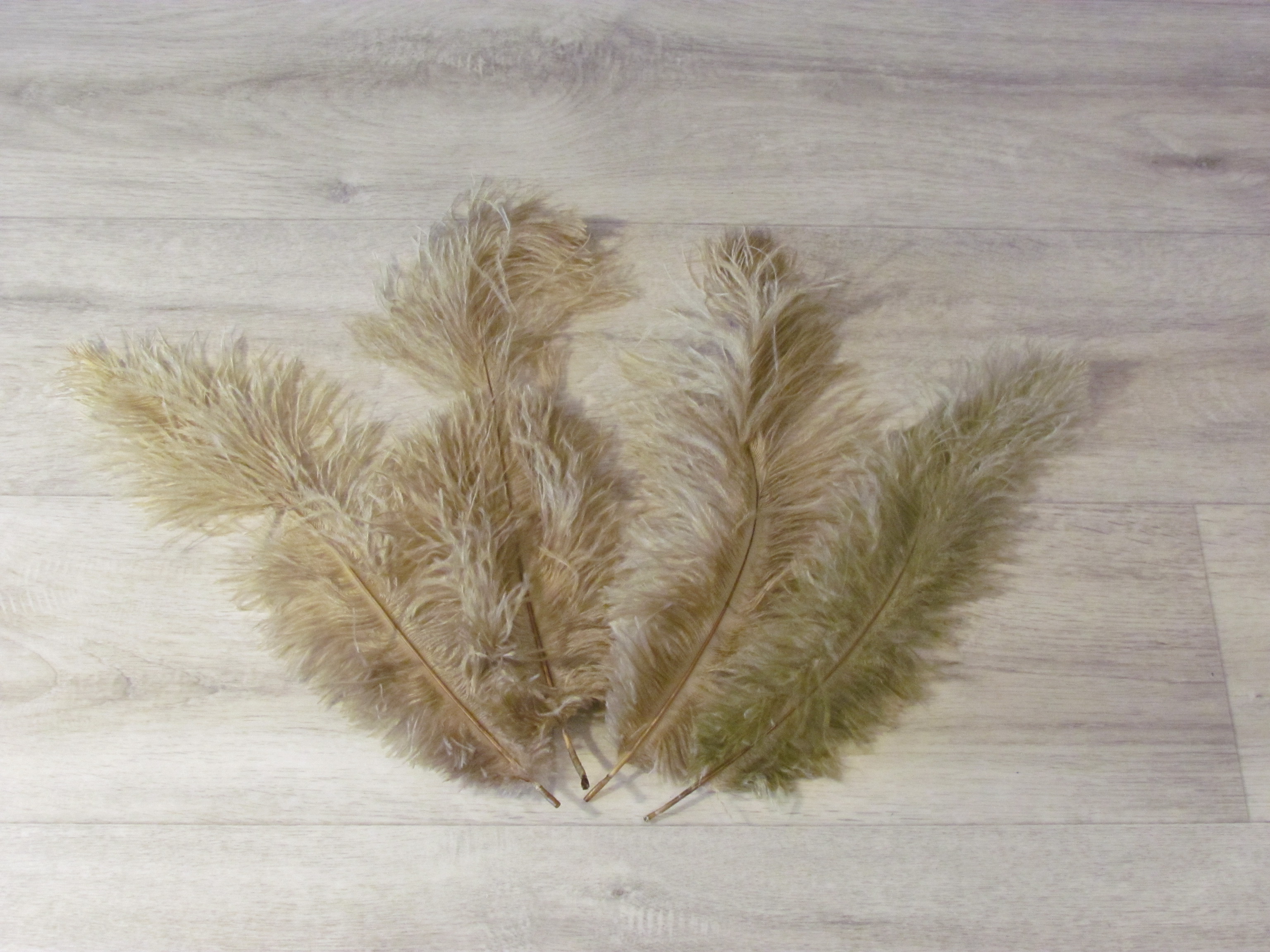 4 Stück Straußenfedern 25-35 cm altgold B-Ware