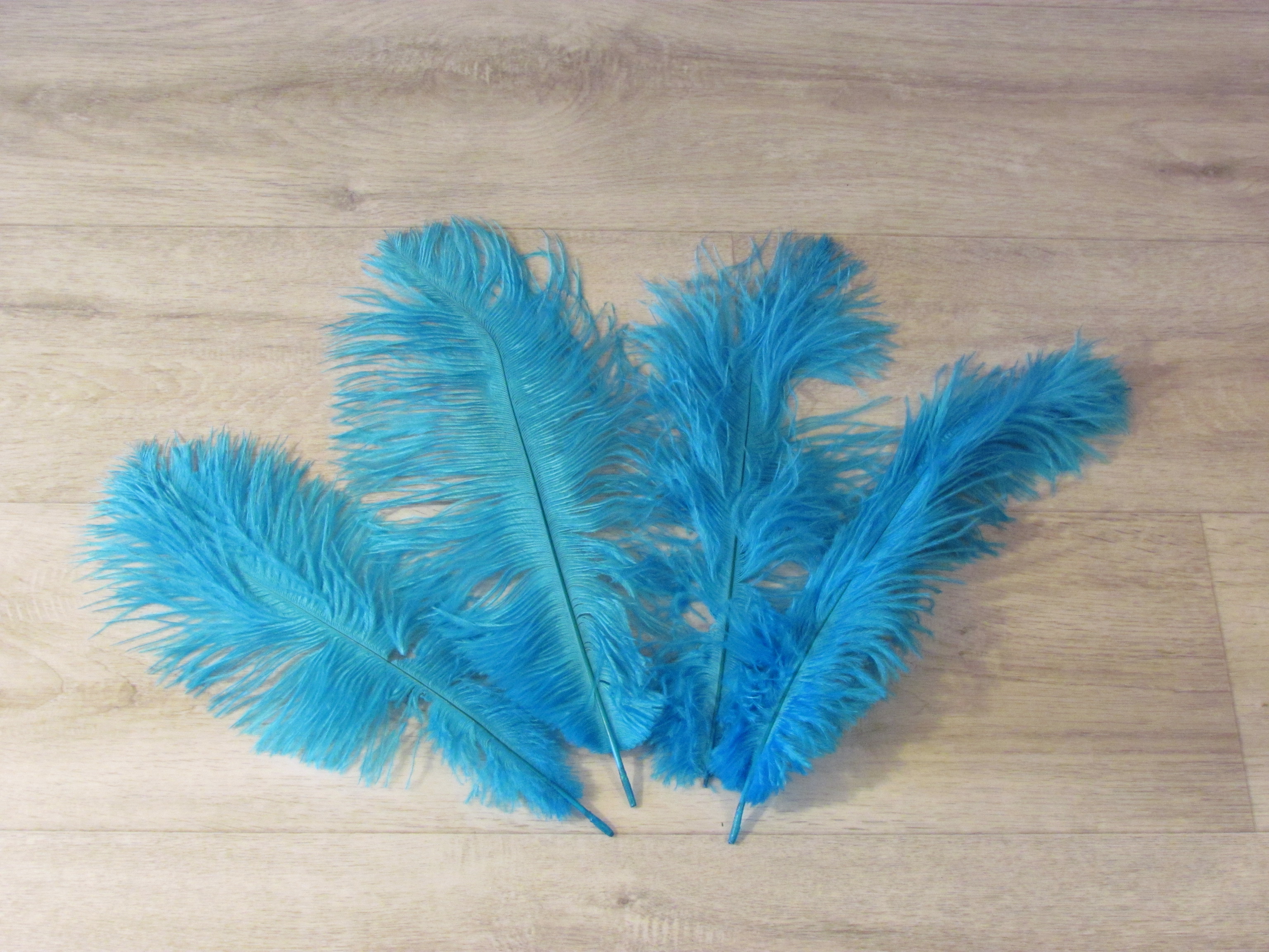4 Stück Straußenfedern 25-35 cm helltürkis B-Ware