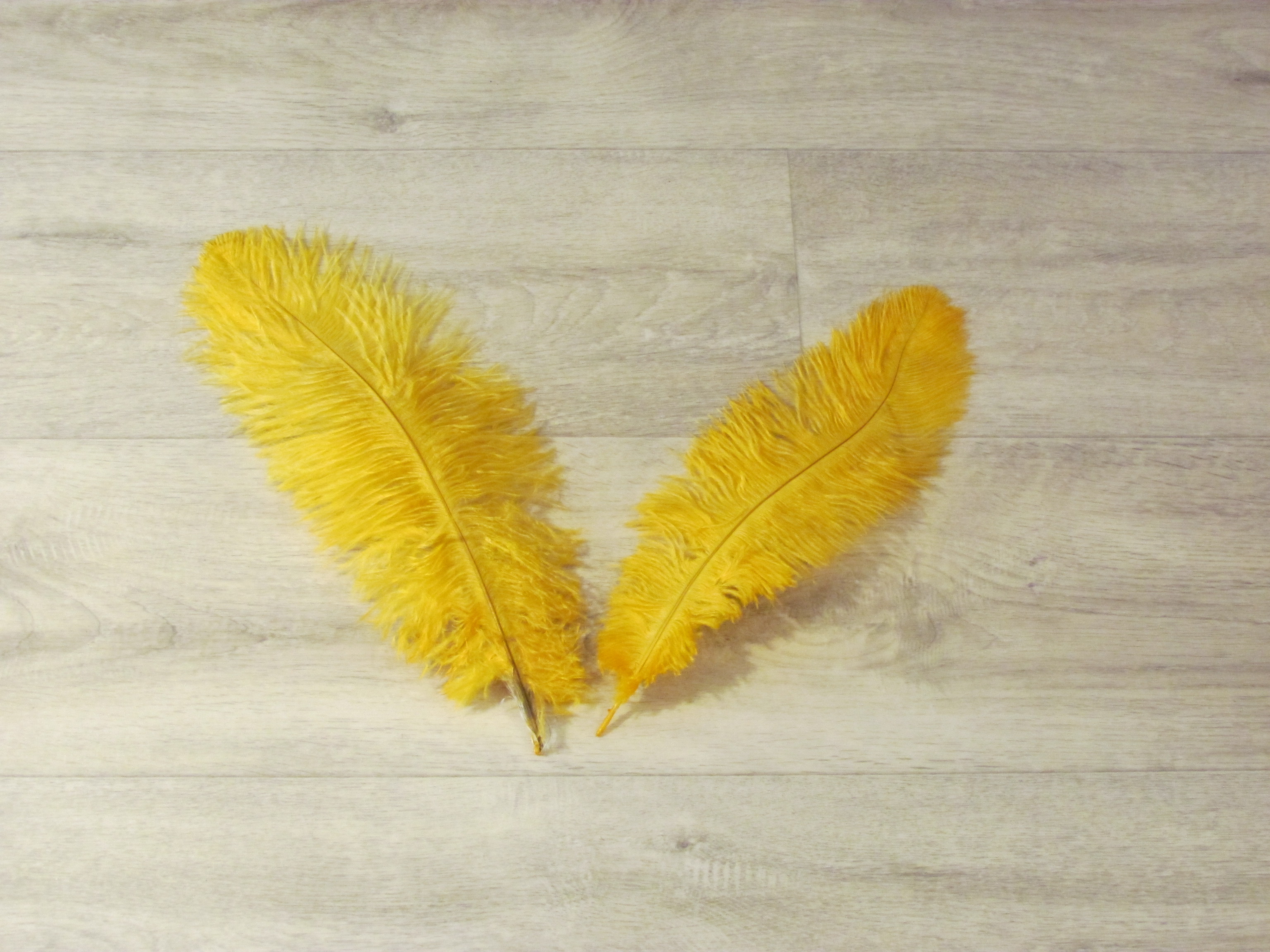 2 Straußenfedern 30 bis 35 cm dottergelb
