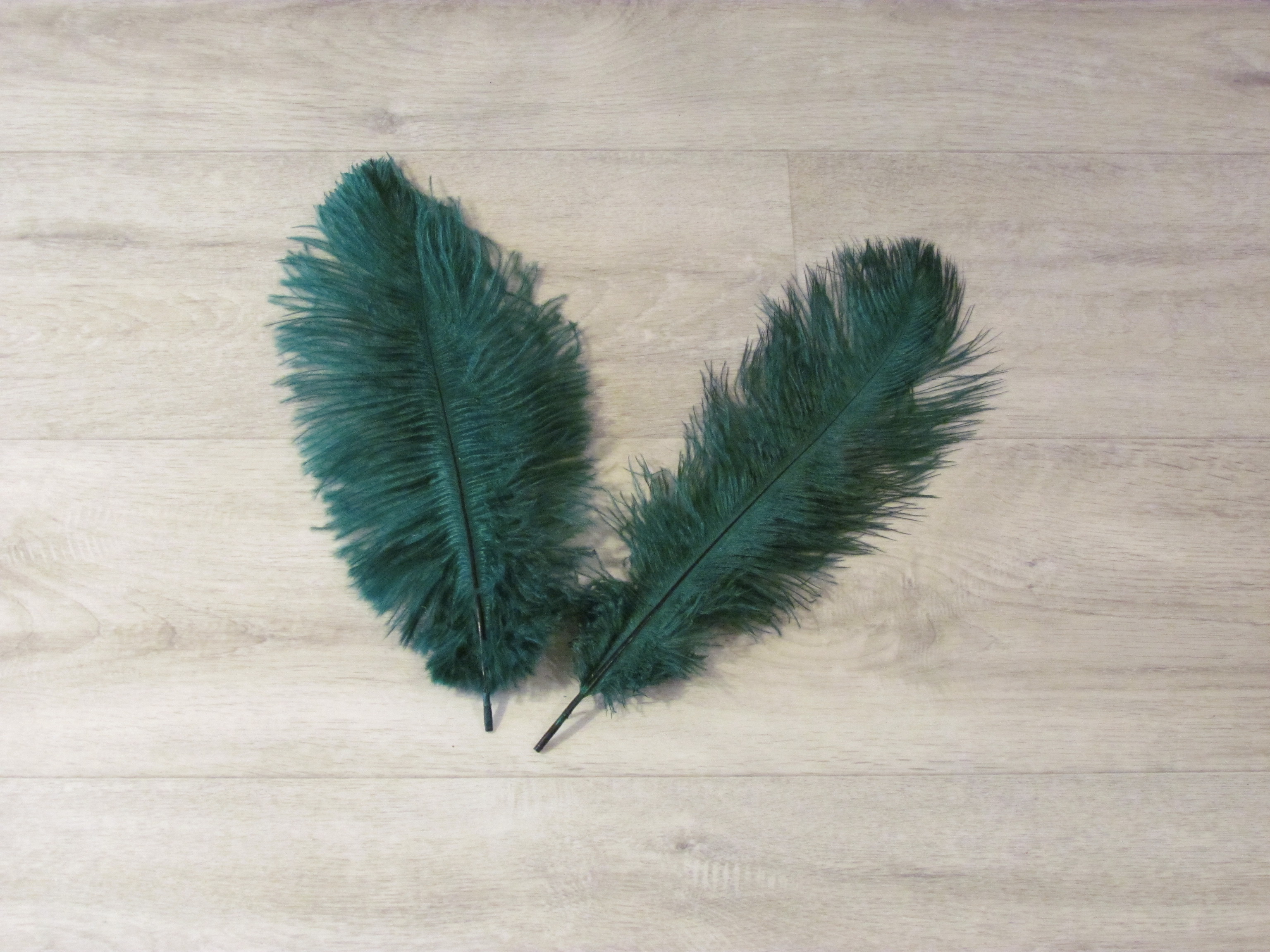 2 Straußenfedern 30 bis 35 cm flaschengrün