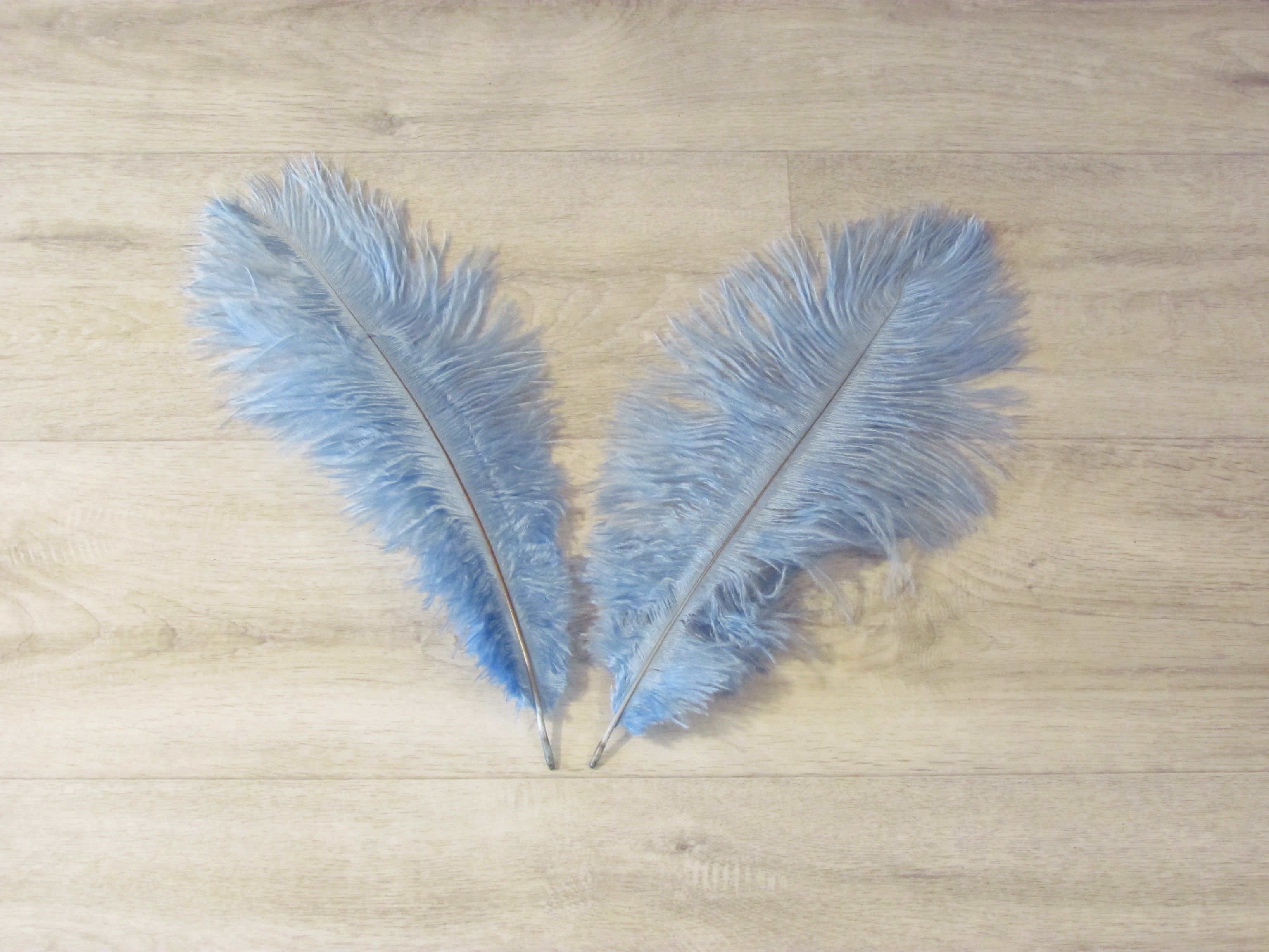 2 Straußenfedern 30 bis 35 cm himmelblau