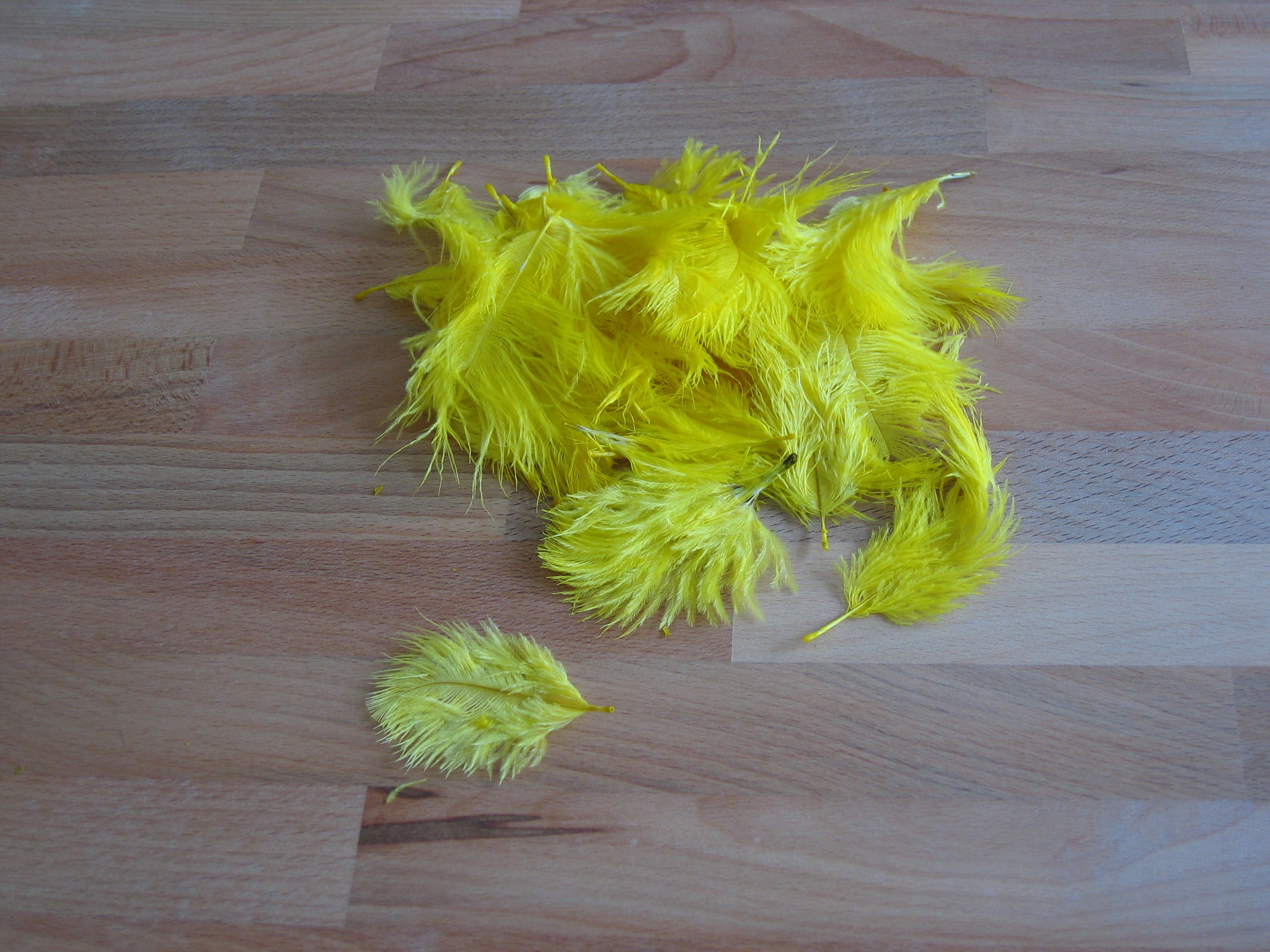 30 kleine Straußenfedern 5 bis 12 cm gelb B-Ware