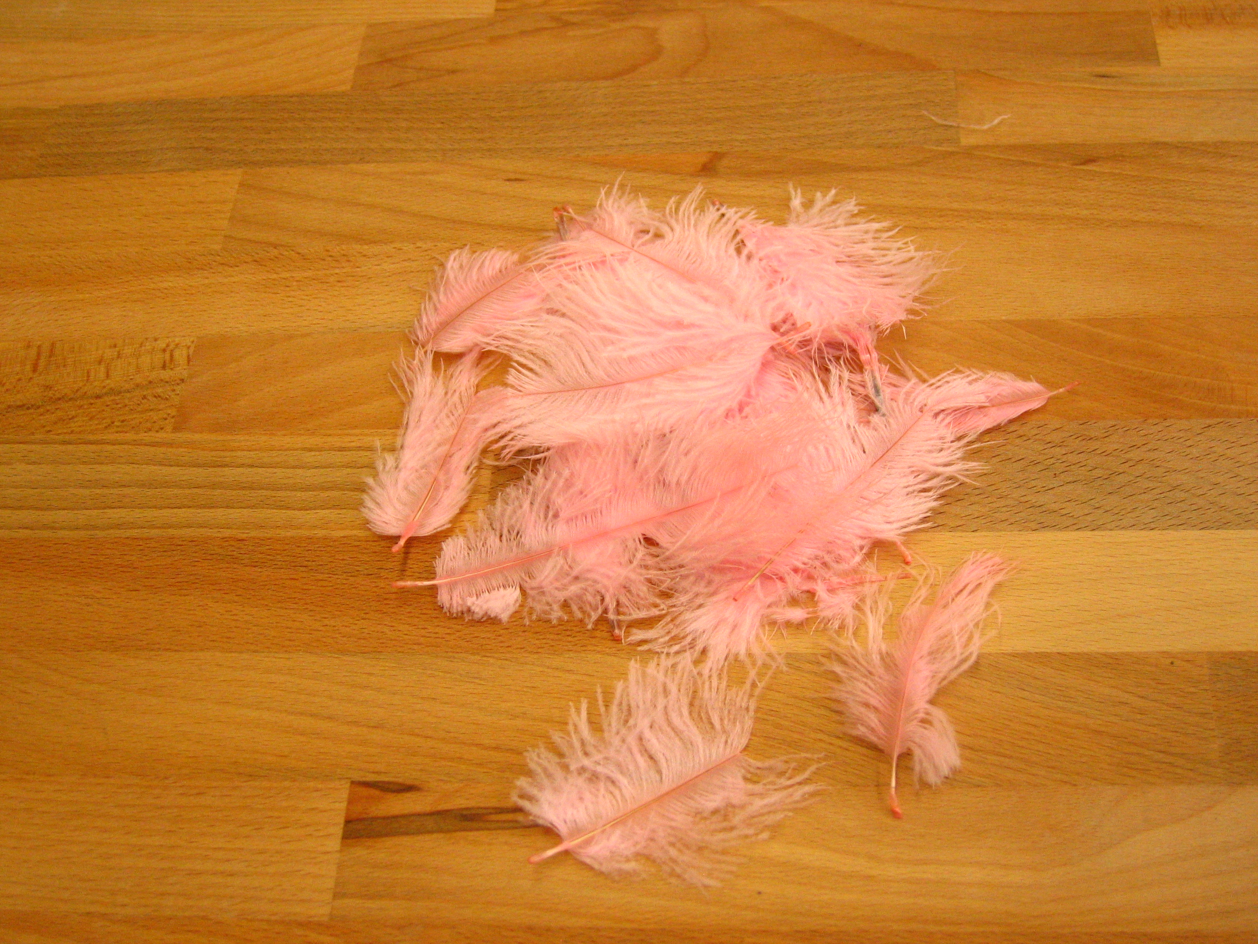 30 kleine Straußenfedern 5 bis 12 cm hellpink B-Ware