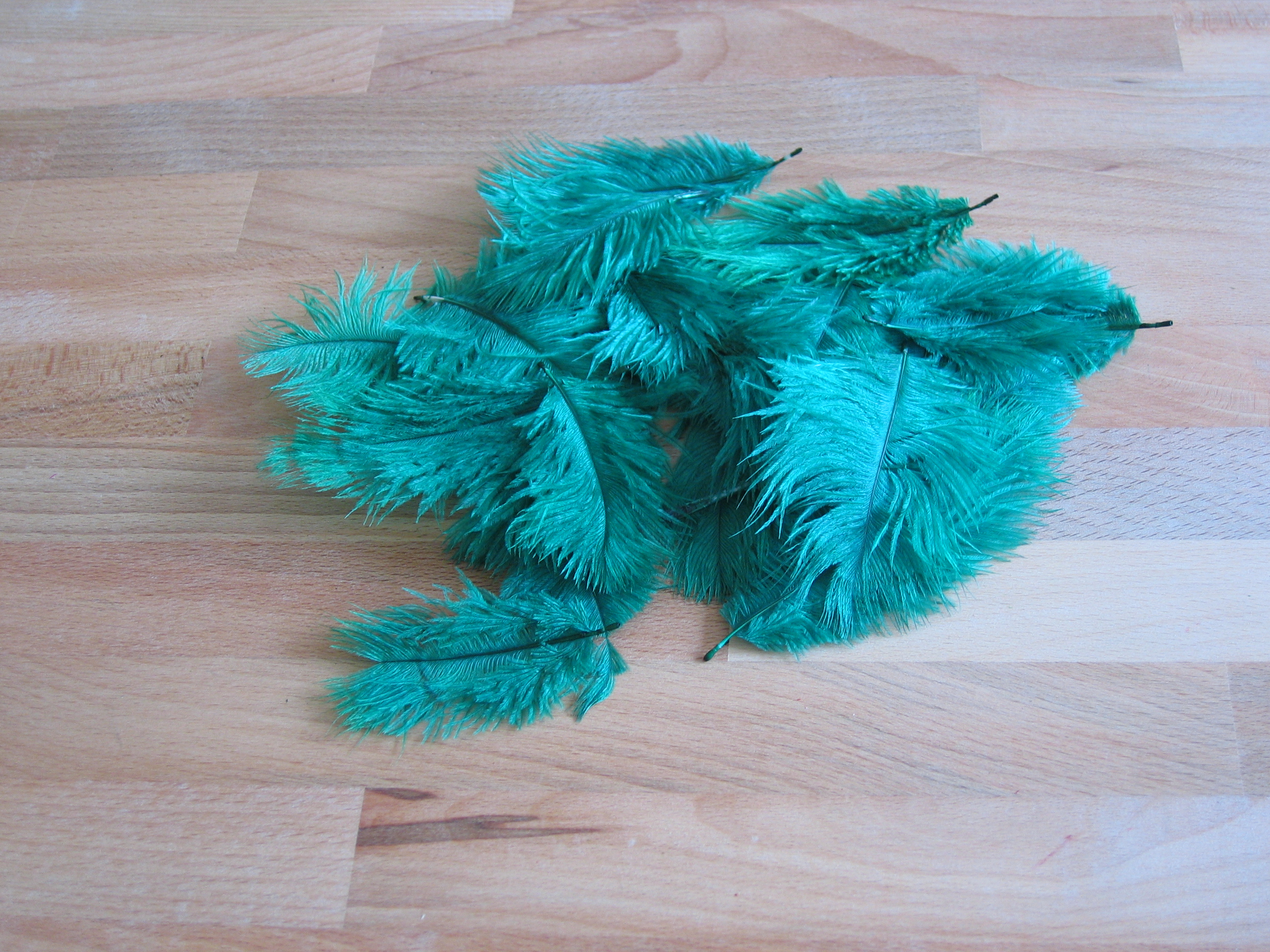 30 kleine Straußenfedern 5 bis 12 cm smaragdgrün B-Ware