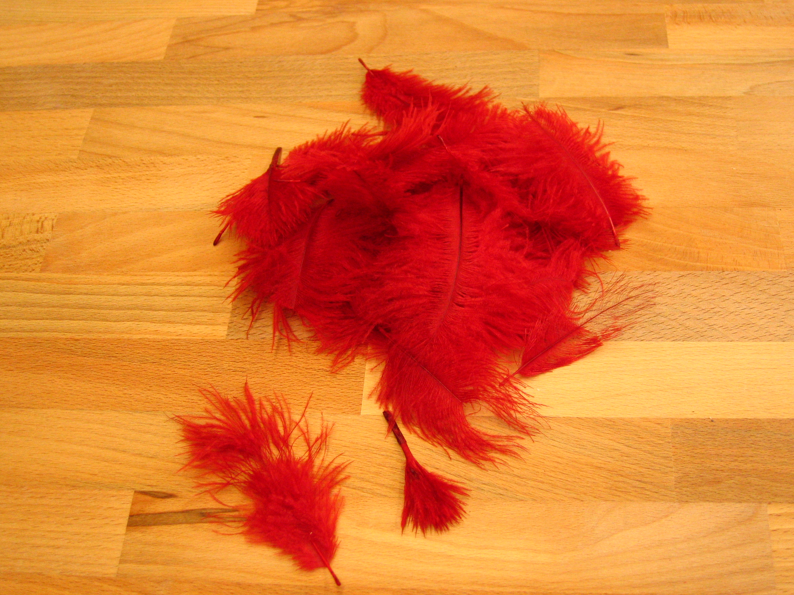 30 kleine Straußenfedern 5 bis 12 cm weinrot B-Ware